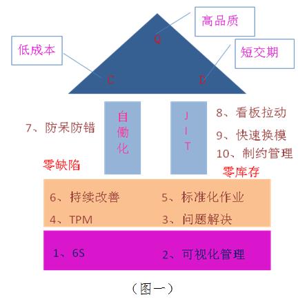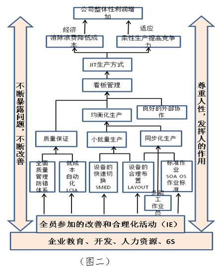 过去乐鱼体育对TPS的系统认识,主要是从精益屋(图一)里的所有工具知识开始,实施过程中乐鱼体育也使用了很多的工具去解决现场问题,比如防呆防错、快速换模等。但由于全员参与的氛围不够,而且每期项目结束后没有形成长期的绩效考核,导致经过一段时间后,部分改善后的指标又出现反弹。为了建立一套更符合乐鱼体育乐鱼体育官网的TPS系统推行方法,使全员再好地参与到TPS当中来,形成一致的改善方法和习惯,从而形成具有乐鱼体育特色的精益生产文化,乐鱼体育再次与丰田企业文化进行了对比,从《大野耐一语录》中再次找到了另一个精益屋(图二)。